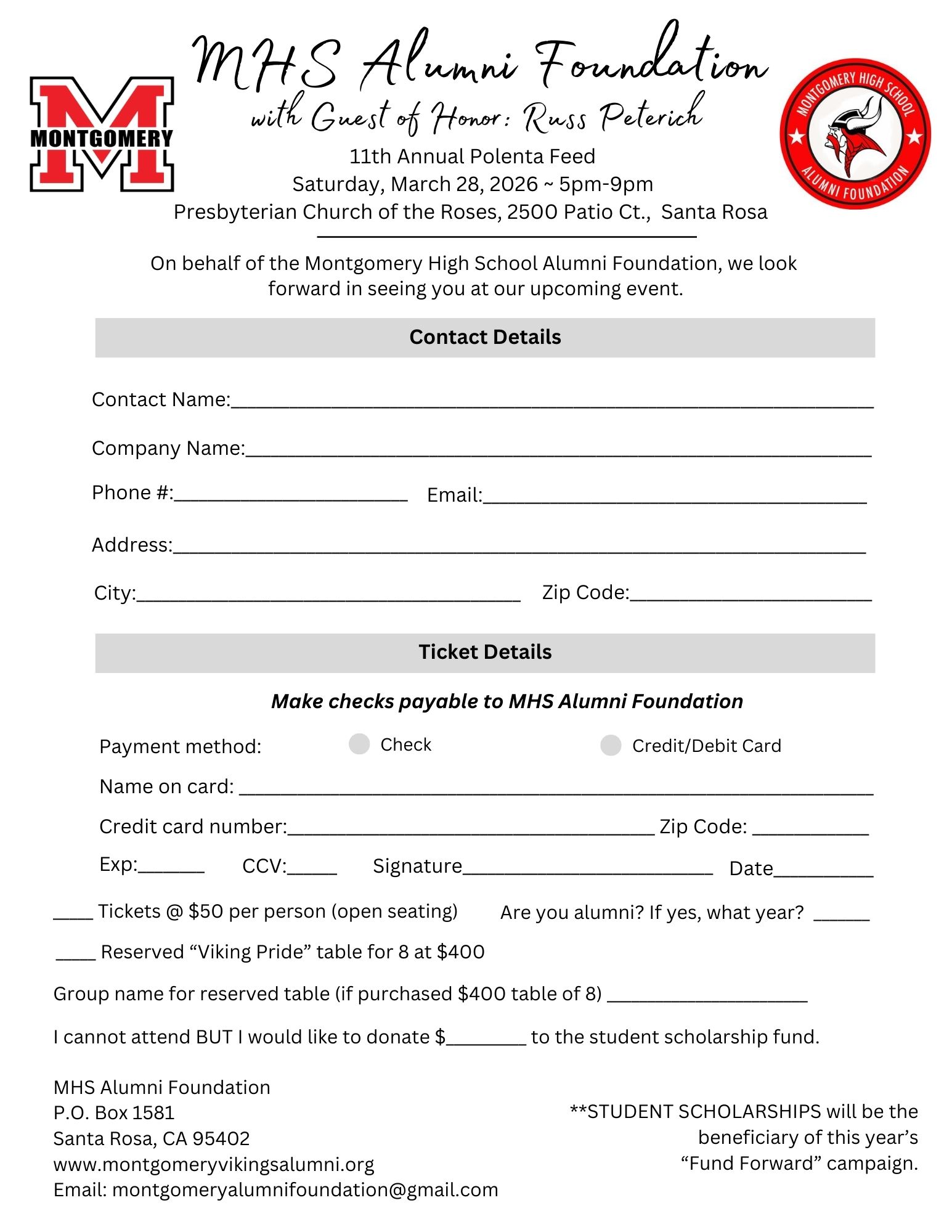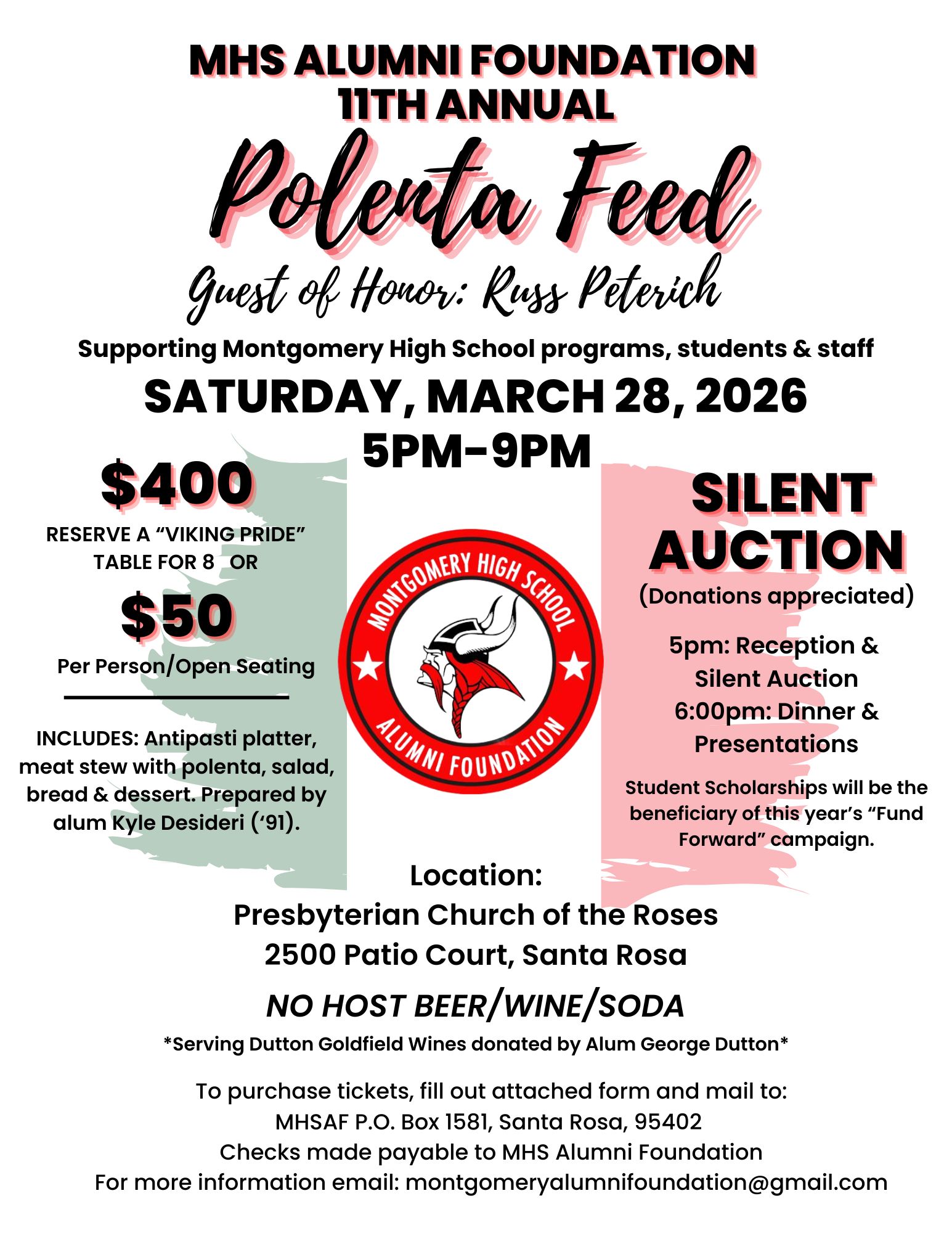 polenta@eventbrite.com is where you sign up for the 6th annual MHSAF Polenta Feed. Do it today! We've attached a flyer (link below) you can print and post around town to help us promote our event - we appreciate any help we get. Also, Alums and Friends of MHSAF, if...